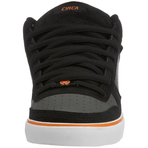 Board up the right path in these C1rca 8 Track skate shoes. Leather or leather and textile upper in a technical skate shoe style. Reinforced layering materials, lace-up front, elastic tongue straps for stability, genuine vulcanized construction and unique collar shape for added heel support. Breathable fabric lining and cushioned insole. Latex cushion at heel and arch for added support, sturdy midsole and custom C1RCA herringbone tread pattern for excellent board control and flexibility.